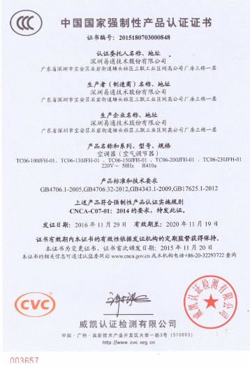 Standard:3C Numer:2015180703000848 Data wydania:2016-11-29 Data wygaśnięcia:2020-11-19 Zakres / piecyk:Air conditioner Wydane przez:CVC |